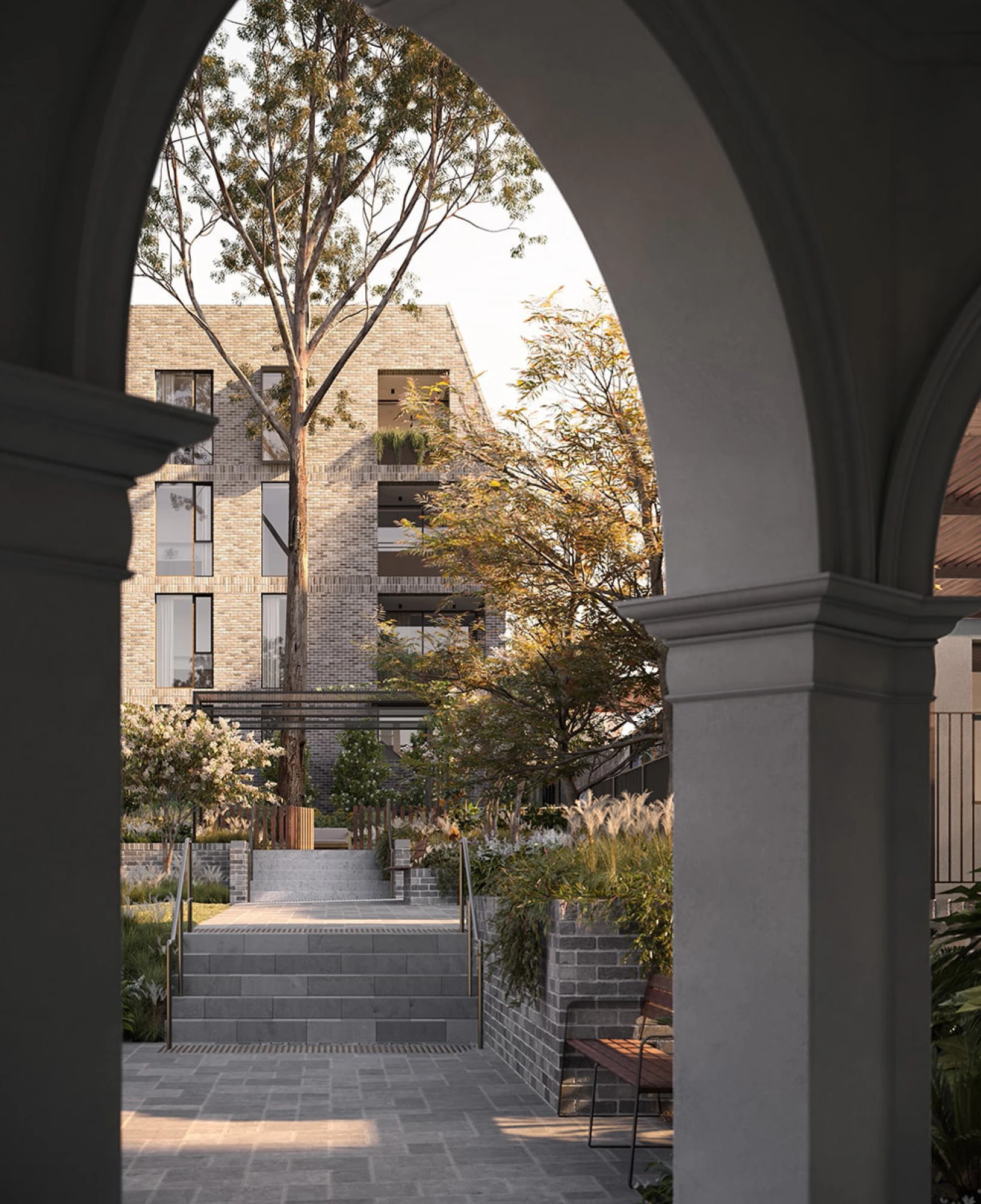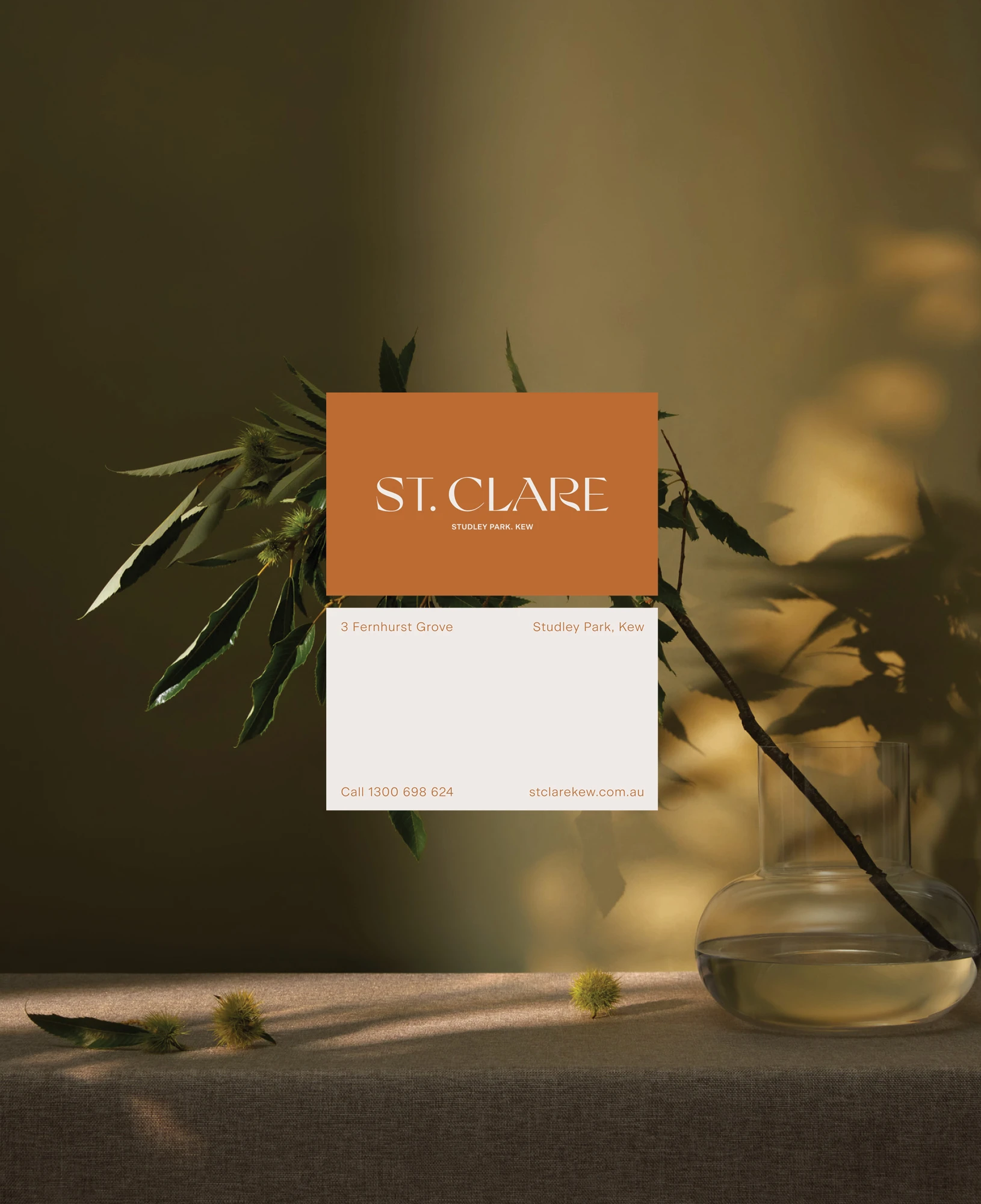 Vibrant garden spaces designed by Oculus are an outdoor oasis for residents to meet and interact. The precinct, and grand-scale homes themselves were designed by Woods Bagot Architects. Purpose-built community spaces are located within the remodelled heritage spaces of the existing buildings. The design system inspires, its warm colour palette complementing the greenery of the site, paired with a soft, organic wordmark and refined imagery to depict a community of like-minded individuals enjoying the world-class dining, wellness, and recreation amenities of St. Clare.